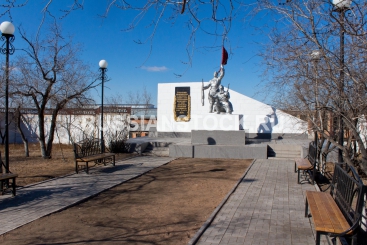 Улан-Удэ, апрель 2013, ул. Смолина. Памятник партизанам времен гражданской войны XX века (напротив корпуса БГУ). Надпись на барельефе: "Вечная память красногвардейцам и партизанам, павшим в боях за освобождение Верхнеудинска от японо-американских интервентов и семеновских банд 2 марта 1920 г.
