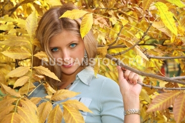 Голубоглазая блондинка в осеннем парке