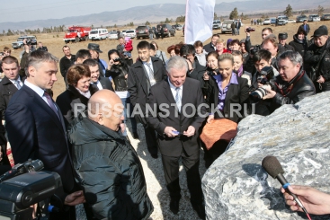 Торжественное мероприятие по поводу укладки первого камня в фундамент будущего свинокомплекса "Восточно-Сибирский", село Усть-Брянь, Бурятия