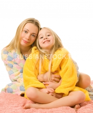 Мать и дочь в махровых халатах