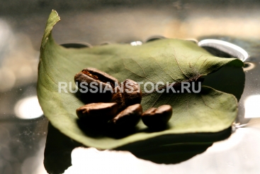 Зерна кофе на листе