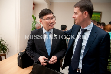 Улан-Удэ, 12 мая 2012. Депутат Батор Цыбиков и Александр Флусов на внеочередной сессии Народного Хурала.