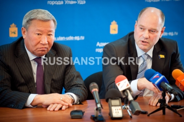 Улан-Удэ, 22 октября 2012. Совместная пресс-конференция мэра Улан-Удэ Геннадия Айдаева и председателя горсовета Улан-Удэ Александр Голкова.