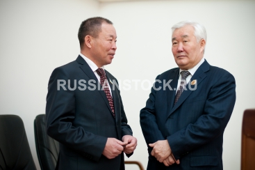 Цыденжап Батуев, депутат Народного Хурала Республики Бурятия, и Евгений Ханхалаев, управляющий отделением Пенсионного Фонда России по Республике Бурятия.