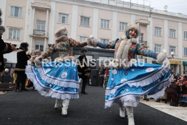 Улан-Удэ, 20 февраля 2026. Дэгэлфлешмоб - участники акции в бурятских костюмах прошли по улицам города, приуроченный к Году единства народов России