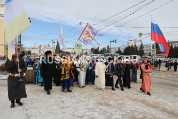 Улан-Удэ, 20 февраля 2026. Дэгэлфлешмоб - участники акции в бурятских костюмах прошли по улицам города, приуроченный к Году единства народов России