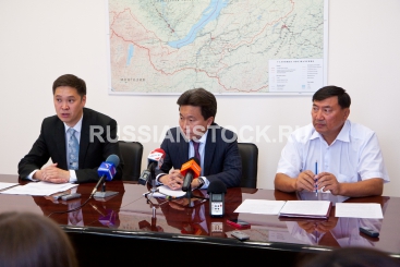 Улан-Удэ, 25 июля 2012. Тимур Цыбиков, Владимир Матханов и Владислав Бумбошкин на пресс-конференции по итогам фестиваля "Алтаргана-2012".