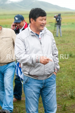 Бурятия, 5 августа 2012. Благотворительная акция, организованная Буддийской традиционной Сангхой России при поддержке БРО партии «Единая Россия», в целях поддержки и развития номадного животноводства в РБ. На снимке: Геннадий Лхасаранов, глава администрации МО "Кижингинский район".