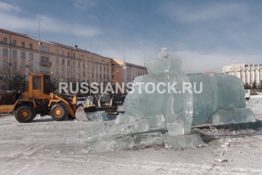 Улан-Удэ, 3 марта 2015 (20150303). Демонтаж новогоднего городка ледовых скульптур на пл. Советов.