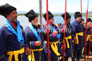Улан-Удэ, 30 июня. Встреча казаков, осуществивших водный переход на судах, стилизованных под «струги» XVII века, шедших по озеру Байкал из г.Северобайкальска в Улан-Удэ.