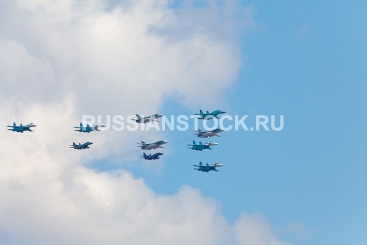 Групповой полет самолетов на военно-воздушном параде.