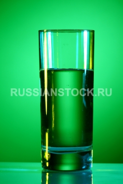 Стакан с водой на зеленом фоне.