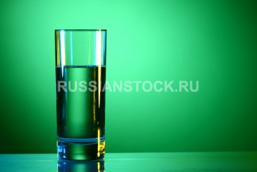 Стакан с водой на зеленом фоне.