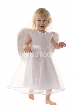 Девочка в белом платье и с крыльями ангела