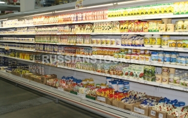 Торговые стеллажи с продуктами в магазине.