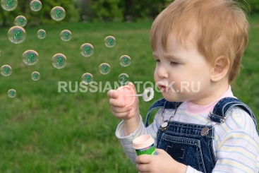 Ребенок пускает мыльные пузыри.