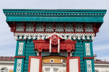 Улан-Удэ, апрель 2026. Арт-объект "Наличник" на улице Банзарова. Памятник деревянному зодчеству Улан-Удэ