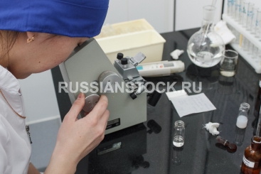 На снимке: провизор исследует качество изготовления лекарственного раствора оптическим рефрактометром ИРФ-454 Б2М.