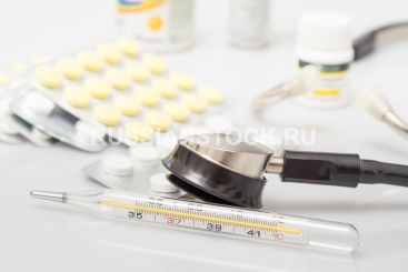 Градусник и медицинские препараты