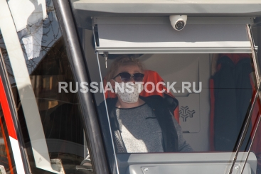 Улан-Удэ, 2 апреля 2020. Водитель трамвая в маске индивидуальной защиты в период эпидемии коронавируса Covid-19