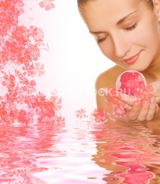 Девушка с ароматическими шарами для ванны
