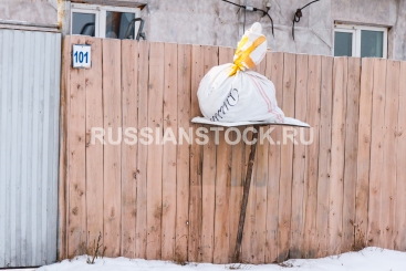 Мешки с бытовым мусором на заборах частного сектора.