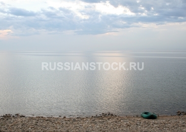 Резиновая лодка на берегу озера.