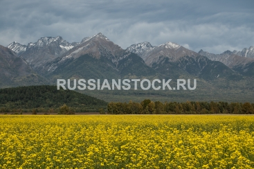 Природа Бурятии. Цветущий луг на фоне гор.