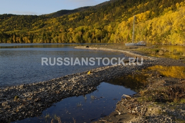 Яхта на фоне осенней бухты