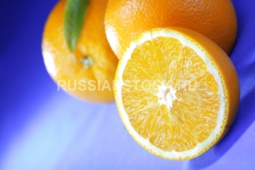Натюрморт из апельсинов на голубом