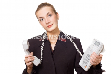 Женщина со стационарным телефоном.