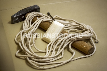 Веревка, мыло, молоток, гвоздь.