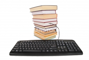 Компьютерная клавиатура и стопка книг