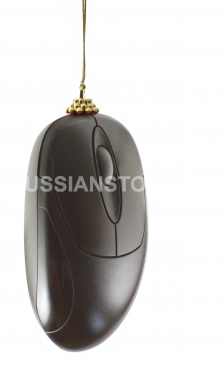 Декоративная черная компьютерная мышь на белом фоне.