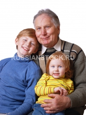 Дедушка с внуком и внучкой