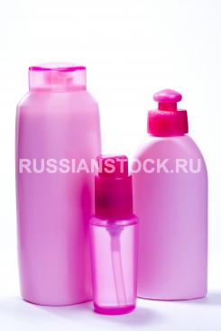 Розовые косметические флаконы Pink bottles for cosmetics.
