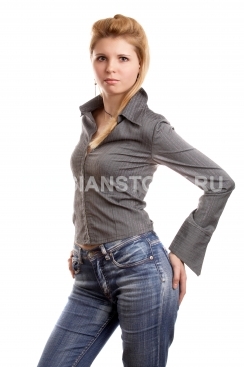 Девушка в серой блузке.