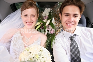 Молодожены в салоне автомобиля