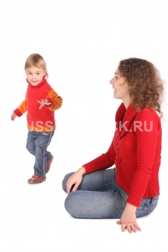 Женщина с ребенком на белом фоне