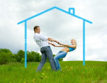 Счастливая молодая пара мечтают о собственном доме