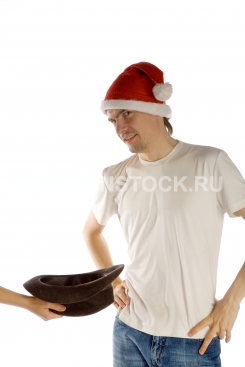 Молодой мужчина в шапке Деда мороза
