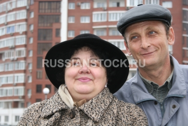 Семейная пара на фоне многоэтажного дома