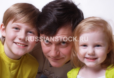 Счастливый отец с детьми.