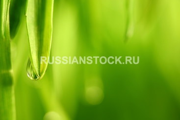 Зеленая трава с каплями росы крупным планом big water drop on grass blade.