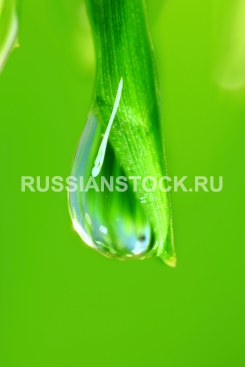 Зеленая трава с каплями росы крупным планом big water drop on grass blade.