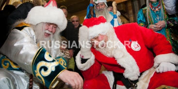 Улан-Удэ, 22 февраля. Международный туристский проект "Сказочный Сагаалган 2012", японский Санта-Клаус Ямамото из города Ямагата и бурятский Белый старец Сагаан Убгэн.