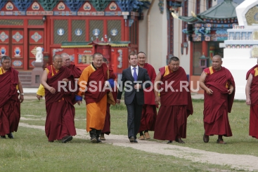 Президент РФ Дмитрий Медведев посетил в Бурятии монастырский комплекс Иволгинский дацан и встретился с главой российских буддистов Пандидо Хамбо ламой Дамбой Аюшеевым.