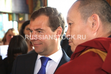 Президент РФ Дмитрий Медведев посетил в Бурятии монастырский комплекс Иволгинский дацан и встретился с главой российских буддистов Пандидо Хамбо ламой Дамбой Аюшеевым.