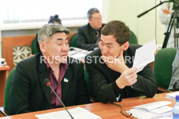 Депутаты Матвей Баданов и Андреян Зыбынов на заседании бюджетного комитета Народного Хурала Республики Бурятия.