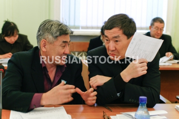 Депутаты Матвей Баданов и Андреян Зыбынов на заседании бюджетного комитета Народного Хурала Республики Бурятия.